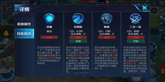 解析:宫本武藏每次释放技能后可以强化下一次的普通攻击,并可以减少所有技能1秒的CD时间。凭借这个被动技能的效果,控制好三个主动技能搭配使用,再加上宫本武藏释放技能不需要蓝量,可以在线上进行多次技能消耗。