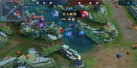 诸葛亮的收割能力体现在大招上。大招对血量越低的敌人伤害越高,并且大招击杀敌人后返还80%CD并触发被动。大招的使用范围非常大,只要玩家注意好走位减少大招被阻挡的概率,往往能以一敌多,甚至五连绝世。