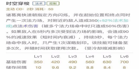 数值分析:大招冷却很长,收割能力强,是诸葛亮的关键技能。推荐有大点大。
