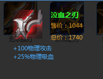 2.物理吸血最高能达100%(意味着你出4把泣血之刃能将物理伤害全部转化成吸血)