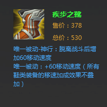 5.疾步之鞋的误判,很多人将疾步之鞋认为是最快的鞋子。但是注意它的被动,只有脱离战斗状态这件装备才配的上疾步二字,如果在战斗状态,它只是一个普通的鞋子。前期出它用来支援是非常不错的,但中后期都是5V5团战时,可以考虑将它换成其他属性的鞋子。