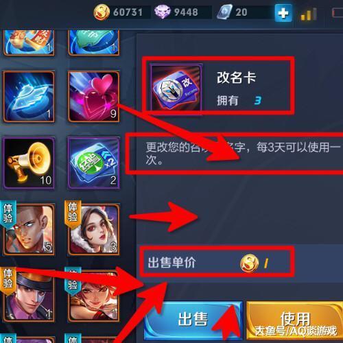 目前Q哥已经有了三张改名卡,但是要这些改名好像没有什么用,因为Q哥的名字是在以前起的,是一个违规的名字,而且还很霸气!所以要这些改名卡也就没有什么作用。但是在此之前已经改了两次名字,改第一个名字的时候,花了九块钱,改第二个名字的时候,是王者荣耀送的一张改名卡。在这里相信有小伙伴就会纳闷,那么这三张是哪里来的呢?难道说有病吗?又买了三张。这三张都是开宝箱开出来的,但是这个改名卡还真的有点心烦。买的时候要花九块钱!而卖的时候只能卖一个金币,分文不值。这是什么交易模式?