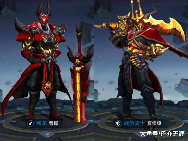 本赛季“无畏之灵”的曹操·烛龙其实是根据夏侯惇·战争骑士的原型改造过来的,稍微对比一下就能发现不少相似的地方——比如头冠、腰部以及胯下那不知名的饰物。