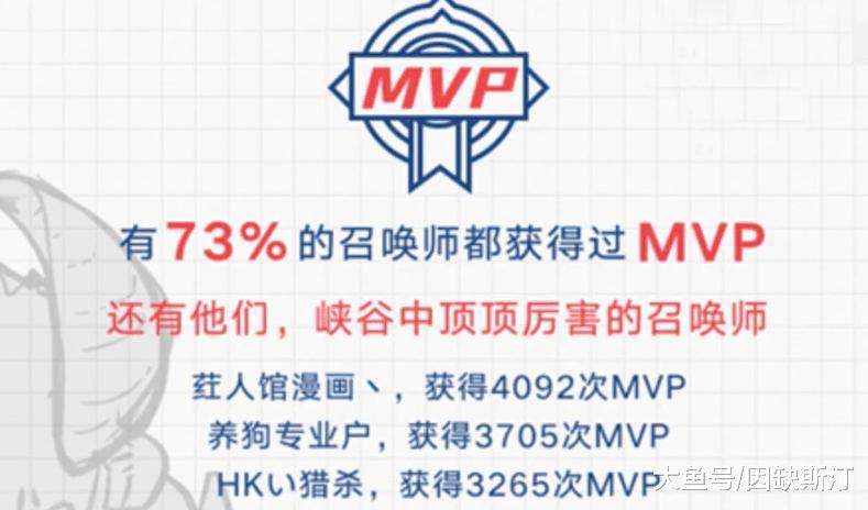 根据官方给出的数据,2017年王者荣耀全年中,有73%的玩家都拿到过MVP,这样的数据不算什么。真正牛逼的是,一个叫做红人馆漫画的玩家,一年拿了4092次MVP,平均下来一天要拿11次MVP!有没有感觉自己玩的游戏都没有拿的MVP多?