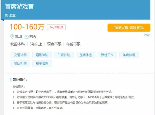 首席游戏官年薪最高达160W要求能玩转绝地求生 王者荣耀