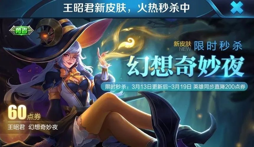 除此之外,还有王昭君新皮肤,限时秒杀,仅售60点卷。