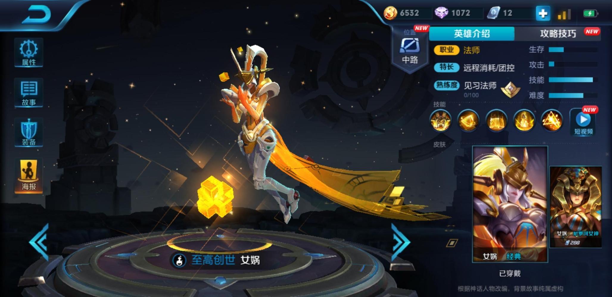 最后一位英雄呢是女娲,这个女娲拥有四个技能,可以说得上是个先天后期发育的英雄,随着等级的提高攻击范围越来越大,这个英雄的大招也是贯穿全图,伤害也是很高的,还可以小半个图实现位移的转换。