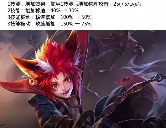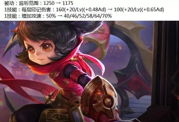 李元芳的被动监听范围削弱,1技能前期伤害、攻速减少,中后期伤害、攻速增加。
