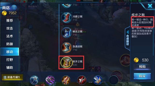 很多打野在出门清完一波野区到达4级之后,会回家补给一双疾步之靴来提高自己的游走能力,而不会刻意去升级打野刀。这种出装对于兰陵王这种依靠技能吃饭的英雄其实很适合,在追击以及逃跑上也能够提供很好的帮助。