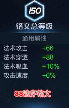 88法穿铭文(梦魇,心眼,轮回):适合诸葛亮等需要高穿透的法师,对于此类英雄该铭文优于法师通用铭文