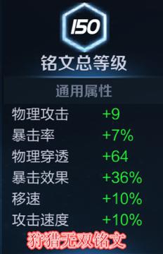 百穿铭文:(以狩猎百穿为例)一套铭文增加了29攻击力,100点物理穿透,10%的攻击速度和10%的移动速度。简直是非常高的属性了,要知道一个价值1080金币的陨星才增加60点物理穿透,可想而知这么一套物理铭文下来相当于领先0级铭文玩家1500金币了,而且一般脆皮的初始护甲不过100左右,非常适合半肉战士如杨戬,达摩,曹操等英雄,配合暗影战斧,后期拥有300点物理穿透,对脆皮来说就是真实伤害了,非常可怕!(另外百穿铭文有:狩猎百穿,隐匿百穿,兽痕百穿等,推荐狩猎百穿)百穿铭文物理通用,(除了猴子,孙尚香等需求暴击英雄除外)性价比非常高,小编建议大家优先做出。