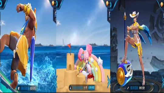 这3款皮肤都是去年夏季出的皮肤,他们组成的海滩之家那周瑜是不是要叫夏侯惇和钟无艳岳父岳母了呢。