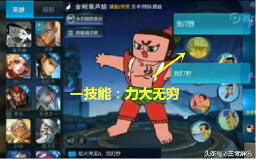 被动技能就是坚若磐石了。说实话这个技能王者解说觉得有些鸡肋。感觉跟苏烈的被动差不多,当葫芦小金刚的七个主动技能都打开之后,激活被动技能,当七个技能全部处于冷却状态时,葫芦小金刚被击杀可触发被动,原地复活静止不动,免疫所有攻击一段时间。一技能就是力大无穷。属于自身的buff加成,释放技能后的普攻额外增加物理伤害