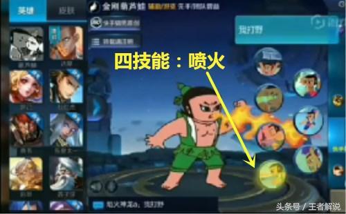 五技能喷水。这个与喷火还是有一些差别的。葫芦娃向指定方向吐出水球,造成一定的法术伤害,然后概率造成眩晕效果。也就是甄姬的二技能了。那个弹弹弹的水球啦。至于六七技能就更好理解了。六技能是隐身,因为什么都看不见所以王者解说就不给你们放图了,效果参考兰陵王大招。七技能宝葫芦,拿出葫芦吸收一切,技能效果参考钟馗大招。