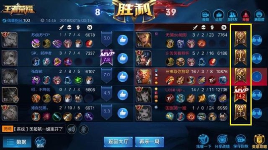 最后这战绩对面也得怀疑人生,难怪人家拿了五个金牌玩家,原来着对面这么差。这五个大神匹配到了一起,然后五个菜鸟也匹配到了一起,这就是为什么会产出五块金牌玩家的原因。