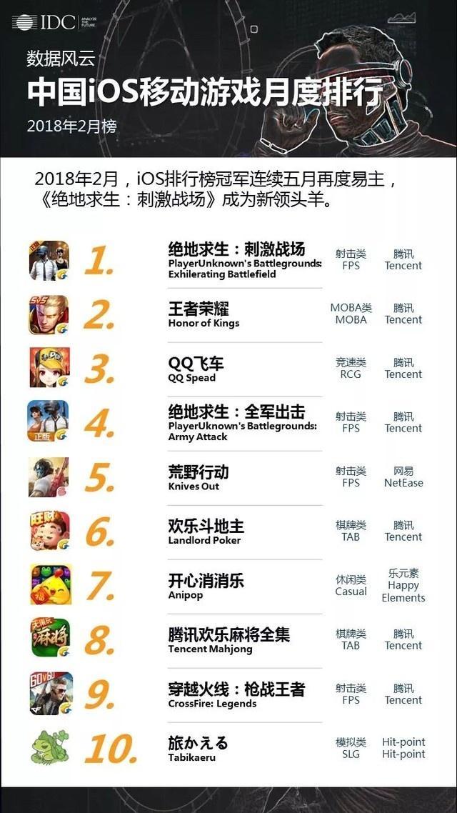 王者荣耀近半年来一直被人们唱衰,但是近日通过专业数据调研机构IDC公布的今年二月手游排行榜,曾经略显颓势的《王者荣耀》重回榜首,而且在二月排行中前十的手游腾讯占据6席,网易占据2席。