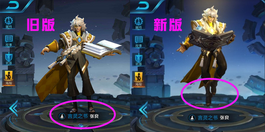 张良在选英雄的动画那里有一定的修改,出场动画得到优化。两个模型对比:新模型更加亮色,旧模型非常暗淡。右边是新版张良,再也不用再穿当初的凉鞋了呢~