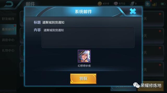 然后再登录游戏,在邮件里就可以领到皮肤了(不是直接就有的,要去邮件中领),会提示“道聚城到货通知”。