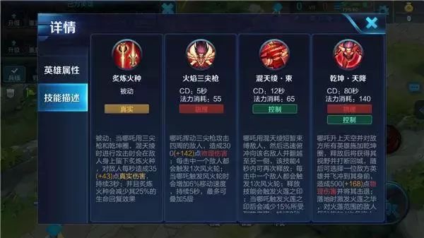 哪吒用三尖枪和乾坤圈、混天绫进行攻击会在敌人身上残留炙炼火种,造成持续的真实伤害,并且炙炼火种会减少其生命恢复效果,这个被动让哪吒的输出有了很大的保障,而且对恢复型英雄克制比较明显。