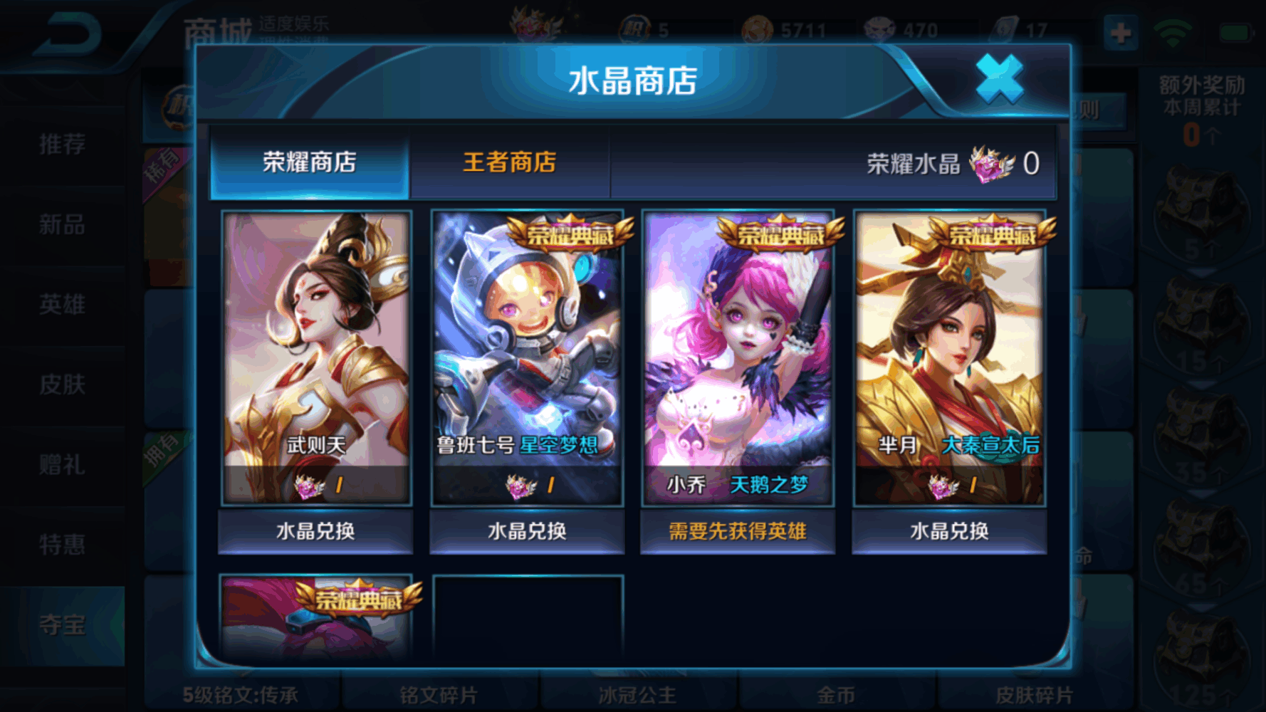 荣耀水晶的我就不多说了,这绝对是王者峡谷的壕哥,小编自己都没有一个典藏皮肤。
