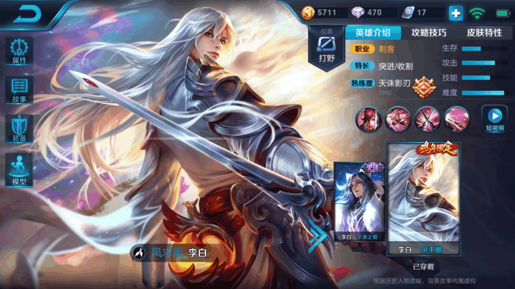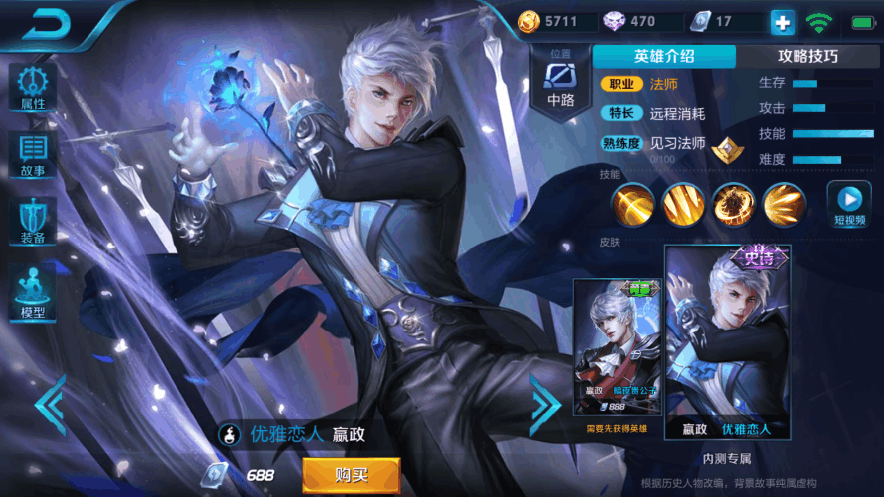 7:人民币英雄(之前还是可以用金币买的,后来官方对他更加照顾了)皮肤是内测,拥有的人很少。