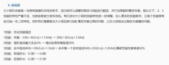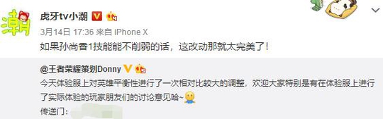 但是,随后在体验服体验过孙尚香之后的小潮改变了一波看法,直言:总体来说是加强了的其实,虽说你1技能削弱了伤害,但是可以用铭文来弥补,其实2技能可是加了破甲哦,很开心,先手2技能的话,随随便便能上四千暴击!看样子,有了小潮的这波安慰之后,玩家们应该也不会伤心了,还是要大神感受下才行啊!