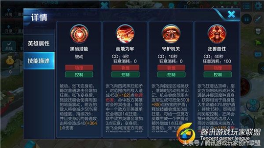 张飞向指定区域跳跃,落地时启动机关印记,机关会给范围内友军生成可抵免伤害的护盾;释放技能会增加狂意,每给一位友方英雄生成一个护盾可额外增加狂意;变身后,张飞向指定区域跳跃,践踏该区域敌军造成物理伤害。这个技能在张飞在变身前是辅助技能,变身前没有伤害,可以在打团的时候给队友减伤,也可以让张飞位移逃跑,变身后又是一个很给力的输出技能。