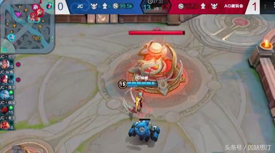 这时,当超玩会反应过来想要回来守住水晶的时候,JC纵情的韩信早就已经就位了,已经带好兵线来到水晶前。
