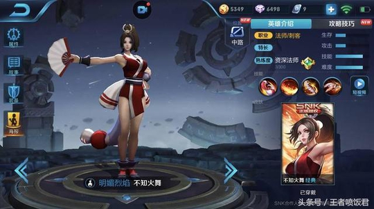 火舞作为SNK的经典英雄,在王者荣耀中非常受玩家们的欢迎,虽然近期的出场率逐渐低迷,但是在大神手中的火舞依然非常强势。七段位移一出,灵活性逆天不说,伤害也是非常爆炸,对付脆皮和妄想在她残血时追杀的英雄,不知火舞都能轻松搞定,在后期单独追一个残血的火舞是非常可怕的,因为你在不知不觉中就会被她完美的风筝,等你发现,猎物和猎人的角色早已经变了!