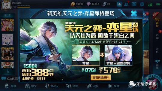 很早之前就和大家爆料过王者荣耀在下周二,也就是3月20号会上线两位英雄,一个是重做英雄张良,另一个是新英雄弈星。昨天游戏中已经公布了张良的海报,今天零点则是公布了弈星的海报。