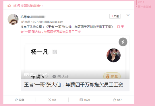 王者荣耀:张大仙陷拖欠员工工资风波,网友:这次人设要崩了?