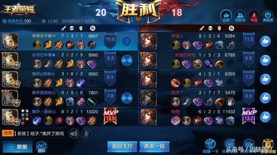 而随后还有两位国服最强鲁班给他点了赞!感谢他这局carry了我们!不过随后该玩家怀疑是bug,还特意点开了战绩查询一下!发现真的是最强鲁班!打王者局鲁班都能把把MVP!