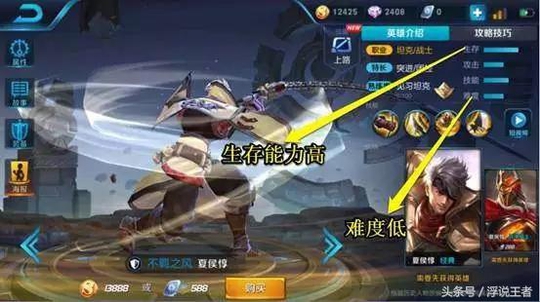 为什么给大家介绍夏侯惇这个英雄呢?各位小主听小编慢慢说来,首先大家可以看上图的属性中,夏侯惇的生存能力非常高,而且难度非常低。夏侯惇被动技能当他生命值低于50%时,每一次技能或普攻命中敌人时就会回复自身3%的血,一技能是朝指定方向斩一道风,如果命中敌人可出发二次攻击,击飞并且眩晕敌人,二技能是护盾并且强化下三次攻击,三技能是朝指方法向扔出链刀,并将自己来到链刀位置,如果击中敌人,可以眩晕敌人。为什么给大家介绍这个英雄,简单的来说就是因为这个英雄不仅自身非常肉,而且控制比较多,不容易死亡,非常适合新手。
