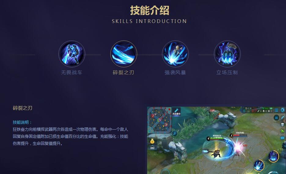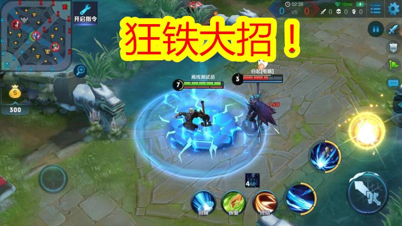 狂铁的大招就是把这把武器狠狠的砸向地面,造成一个范围内的伤害,并且还有减速和沉默的效果,同时,这个电流还会吸取敌人的物理攻击,加强狂铁的物理攻击,最多能叠加五层,大招的强化效果是增加伤害,进一步降低敌人的物理攻击,同时增加自己的物理攻击。