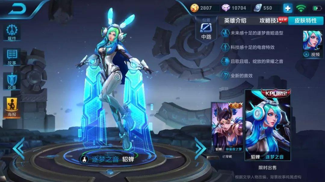 貂蝉的皮肤一直都以美著称,仙女我也是忍不住全皮ALL了,唯有这款逐梦之音,和貂蝉的其他皮肤风格截然不同,未来感十足的科幻风是她最吸引人的地方。(每次看到貂蝉这个皮总是莫名的想起初音……)