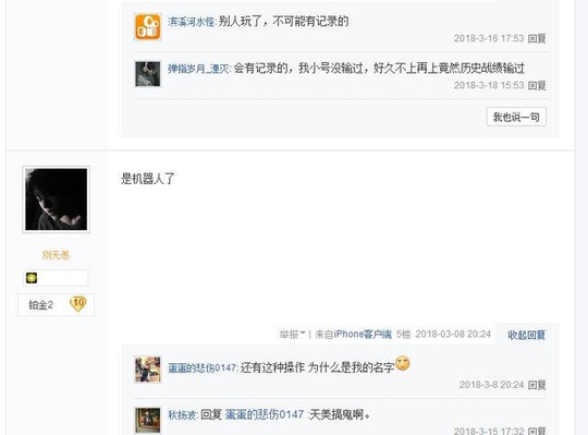 许多网友表示自己也遇到过类似的场景,还有贴吧大神解释了这一神奇的撞号现象 当你建立一个小号的时候,你的第一场排位,对面百分百机器人。一般送到21个人头的时候,就投降了。所以,第一把排位,会让萌新们感觉这游戏真的好简单。但是这些机器人号是哪里来的呢?当然是系统从很多几天不上线的白银号里面选出来的。刚玩的时候,我两个白银号,发现我一个号正在玩,另一个号都没上居然在对面,当时真的懵了,以为自己小号被盗了。打完我上账号一看,还在啊,也没有那一把的战绩。有网友认为王者荣耀利用玩家不在线的时间使用僵尸号的做法不做好吐槽说:“官方创个小号很难吗,或者随便抓个打广告的或者死人号也好啊,非要拿玩家直接开刀,万一有人顺着ID找茬呢?”