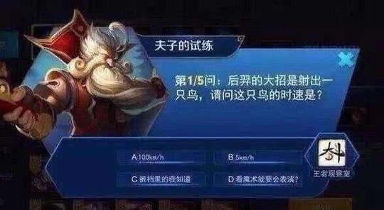 说到我们的《王者荣耀》老夫子试炼,题目库的题目可谓五花八门,有难的也有简单的,答对得越多,奖励就越丰厚。但是猫姐今天想说,下面的这5个题目,你要是能答对一个,猫姐直接直播chi shi;全部答对了,猫姐就当场cao狗!咳咳!扯过头了,下面放上这5个题目,自行感受下...
