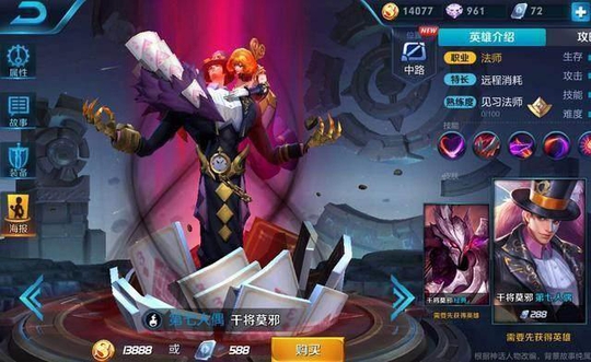 干将在最近的出场率还是不错的,会玩的玩家也是能够轻易用干将超神,首先干将的手比较长所以对线会很烦,后期伤害也是爆炸技能不中还行一旦被干将命中就是大半的血十分头疼另外在团战的时候想切干将也不容易很容易被干将的一技能给弹开