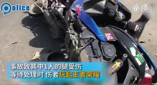 前几天就有一个玩家在路上不小心发生车祸,腿还受了伤,一时动弹不得,只好坐在路边等待事故处理。碰到这种情况平常人肯定赶紧送医院啊,但王者荣耀的玩家不一样。