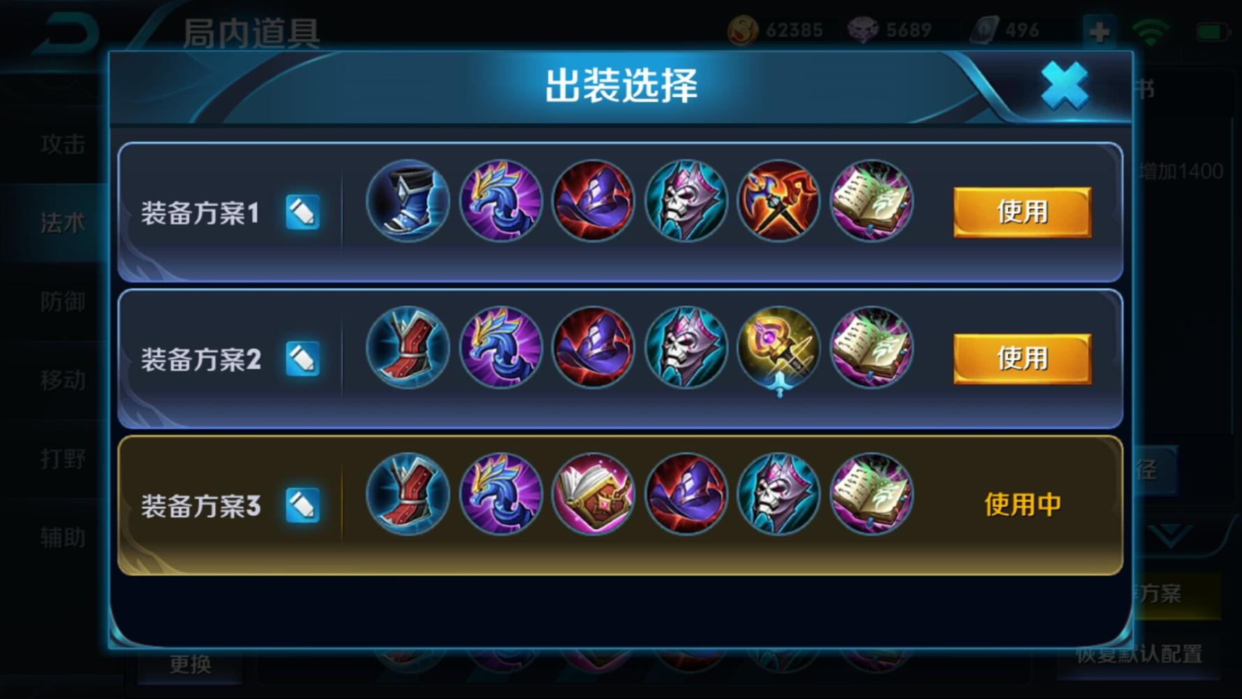 图中提供了三套出装,第一套出装是系统自带,好评率也比较高的一套出装,这套出装新一认为,官方默认出装还是有提升的,毕竟这套出装完全OK,没有什么不好的地方。