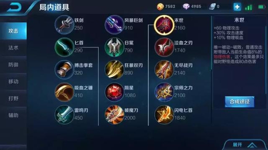 大家都知道推荐装里末世是大部分射手的核心装备,那么末世为什么热门呢?原因是它带来的百分比伤害。一般来说前期无论坦克还是脆皮都只有较低的护甲,而在前期做出了末世后,你的伤害对于低防御的他们来说可谓是刀刀入肉。而且末世是一件集射速、吸血、攻击力的全能装备,所以九成射手选择它作为第一件装备不是没有道理的。