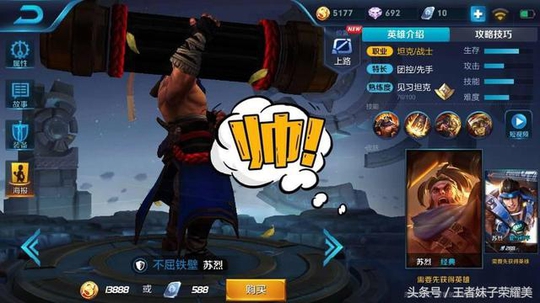 如图所示,当我打开苏烈的英雄界面的时候,我竟意外发现,这个原皮肤发生了bug!你没有看错,由于bug的出现,现在的苏烈仿佛穿了一身黑色的盔甲,就连武器也都被黑化了,看起来比之前更加炫酷了!