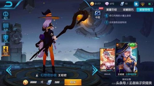 昭君的6元皮肤也是受到了bug的影响,黑色的巫师袍子,橘黄色的丝袜加上黑色的魔法杖让她更加具有神秘气息。