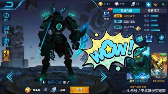 最好看的还属墨子了,这个bug让墨子直接变成了夜光人!淡黑色的盔甲发着微弱的蓝光,看起来就跟夜光机器一样。