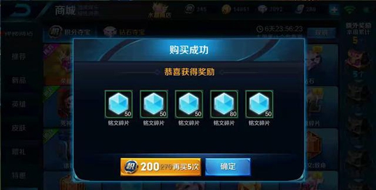 这位玩家五连抽,居然抽到了5个铭文碎片,加起来也就280个,这玩家虽然以这么奇葩的方式抽到了铭文,但也表示很亏啊。