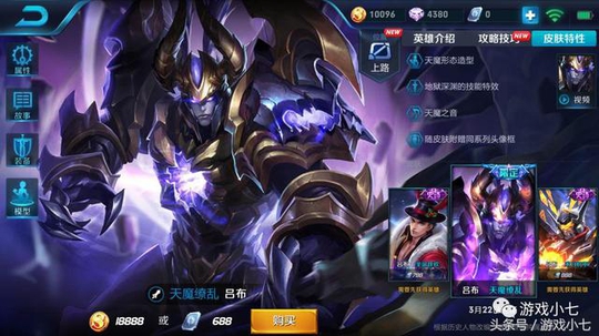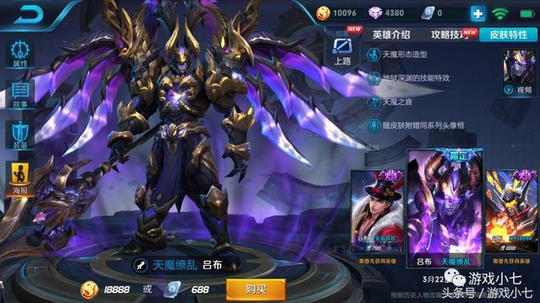 话说最难返场的皮肤应该是吕布的天魔缭乱了(还有一款就是妲己的热情桑巴皮肤),想不到天美居然舍得放出来,还有玩家开玩笑的说,也许只有等王者荣耀快黄的时候,天美才会把他放出来救救场吧,毕竟这款皮肤的特效太(炫酷)夸张、太漂亮了,但是价格也摆在那里真的贼贵,所以没多少点券的小伙伴,还是买个貂蝉的逐梦之音吧。