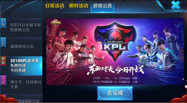 第一件事!2018KPL春季赛今天晚上开启!晚上5点XQ 对 QGhappy 晚上7点半 BA黑凤梨 对AG超玩会
