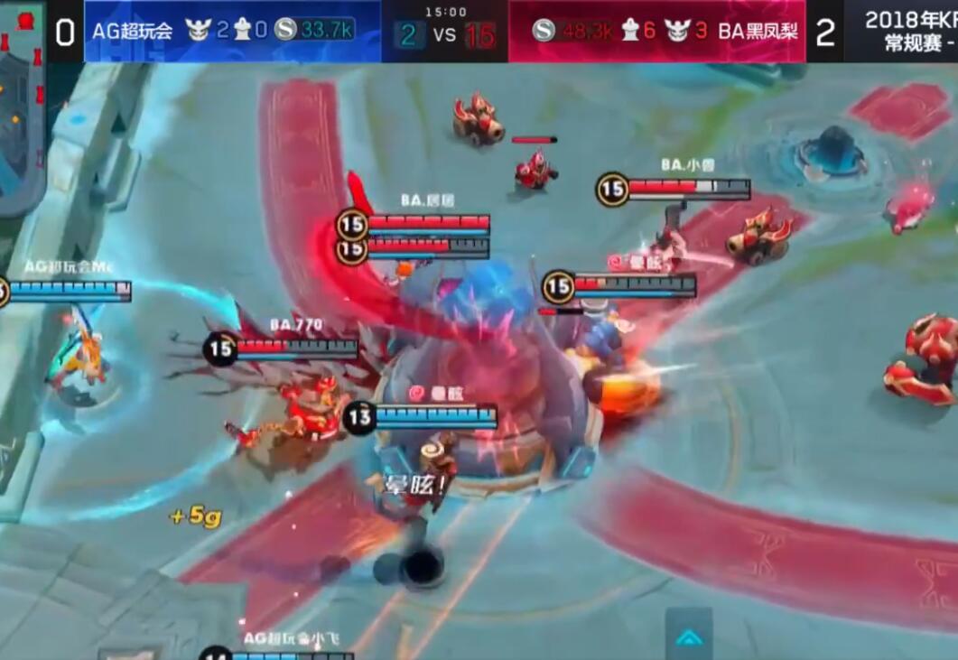 第二局,双方前中期还是打得棋逢对手,各自拿下了对面的一些人头。但是在中期一次关键的主宰战里面,AG超玩会是4人打主宰,结果被主宰一个神助攻,打死一人打残两人,然后主宰也被对面给抢掉,从此就完全落入了下风。最后还不想放弃野区,结果被连抓两人,BA黑凤梨强上高地5打3点爆水晶。