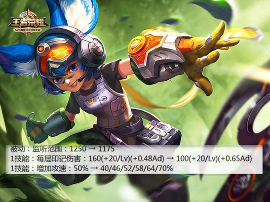 最佳射手李元芳这次也发生了更改,从图中可以看到李元芳主要重做了1技能,每层印记伤害从原来的160削弱到了100,但是攻击速度有所增加!不过还是觉得李元芳削弱了很多!