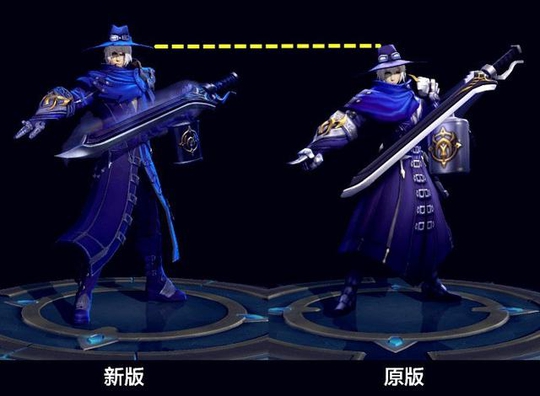 这只是李白优化后的原画,有网友可能会说,原画都优化了,那皮肤是不是也应该优化了呢?别急,这次李白皮肤也进行了优化,皮肤建模都出来了。首先,是288皮肤侠客行的新旧皮肤对比,是不是感觉李白的剑短了些,但是更加霸气了有木有?另外,连酒壶都改小了,以前的有些像酒桶,哈哈。最重要的一点,就是李白竟然长高了,而且衣服的扣子也被解开了。